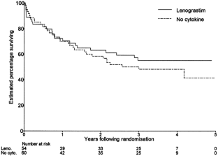 This work was supported by research grant RG950971 from the National Health and Medical Research Council of Australia, by Pharmacia and Upjohn Australia, and by AMRAD Pharmaceuticals Pty Ltd, who provided lenograstim for this study. We gratefully acknowledge the contributions of the numerous data managers who provided information from contributing hospitals. We particularly acknowledge the assistance of the members of the independent safety monitoring committee (John Simes, Richard Fisher and Max Whiteside) who oversaw the conduct of this study. The following members of the Australian Leukaemia Study Group also contributed patients into this study: G Dart, J Ho, N Horvath, Royal Adelaide Hospital, Adelaide; P Elliott, Alfred Hospital, Melbourne; I Prosser, M Webb, Canberra Hospital, Canberra; F Cordingley, Fremantle Hospital, Perth; R Kimber, Royal Hobart Hospital, Hobart; J Gallo, P Motum, D Rosenfeld, Liverpool Hospital, Sydney; S Deveridge, M Seldon, A Spencer, Newcastle Mater Hospital, Newcastle; M Wolf, Peter MacCallum Cancer Institute, Melbourne; P Marlton, Princess Alexandra Hospital, Brisbane; P Bardy, J Szer, Royal Melbourne Hospital, Melbourne; D Ma, Royal North Shore Hospital, Sydney; R Baker, R Herrmann, Royal Perth Hospital, Perth; J Gibson, H Kronenberg, Royal Prince Alfred Hospital, Sydney; I Bunce, Wesley Medical Centre, Brisbane; P Castaldi, M Hertzberg, Westmead Hospital, Sydney. We are also grateful to Andrew Dalton, health economist, for invaluable advice on methods for resource analysis.