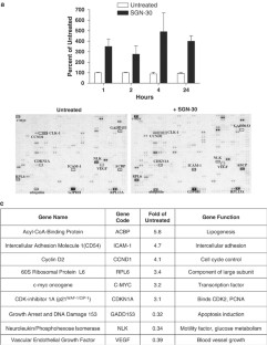 SGN-30, a monoclonal antibody with activity against CD30+ malignancies, is currently in phase II clinical evaluation for treatment of Hodgkin's disease (HD) and anaplastic large cell lymphoma. The mechanisms underlying SGN-30's antitumor activity were investigated using cDNA array of L540 cells. SGN-30 treatment activated NF-κB and modulation of several messages including the growth regulator p21WAF1/CIP1 (p21) and cellular adhesion marker ICAM-1. p21 protein levels increased coincident with growth arrest and Annexin V/PI staining in treated HD cells. To determine if SGN-30-induced growth arrest would sensitize tumor cells to chemotherapeutics used against HD, L540cy and L428 cells were exposed to SGN-30 in combination with a panel of cytotoxic agents and resultant interactions quantified by the Combination Effects Method. Interactions between SGN-30 and all cytotoxic agents examined were additive or better. These in vitro data translated to increased efficacy of SGN-30 and bleomycin against L540cy tumor xenografts. In addition to direct cell killing, SGN-30 affects growth arrest and drug sensitization through growth regulating and proapoptotic machinery. Importantly, these data suggest that SGN-30 can enhance the efficacy of standard chemotherapies used to treat patients with CD30+ malignancies.