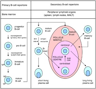 Sagaert X, De Wolf-Peeters C . Classification of B-cells according to their differentiation status, their micro-anatomical localisation and their developmental lineage. Immunol Lett 2003; 90: 179–186.