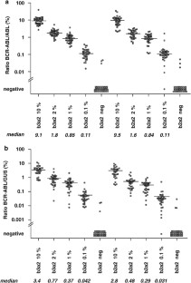Weisser A, La Rosee P, Burmeister T, Raff T, Kneba M, Hehlmann R et al. Sensitivity, quality and comparability of BCR-ABL quantification by RT-PCR: results of an interlaboratory analysis. [Abstract]. Blood 2001; 98 (Suppl 1): 320a.