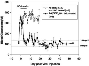 Sugiyama A et al. Defective adeno-associated viral-mediated transfection of insulin gene by direct injection into liver parenchyma decreases blood glucose of diabetic mice Horm Metab Res 1997 29: 599–603