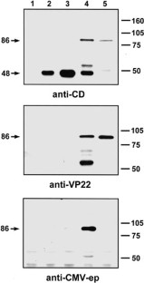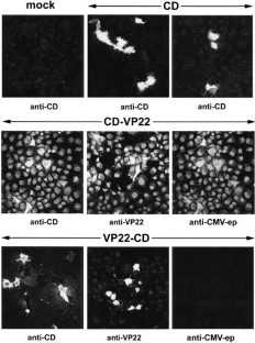 Dilber MS et al. Intercellular delivery of thymidine kinase prodrug activating enzyme by the herpes simplex virus protein, VP22 Gene Therapy 1999 6: 2–21
