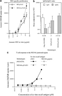 Lazdina U et al. Humoral and CD4(+) T helper (Th) cell responses to the hepatitis C virus non-structural 3 (NS3) protein: NS3 primes Th1-like responses more effectively as a DNA-based immunogen than as a recombinant protein. J Gen Virol 2001; 82: 1299–1308.