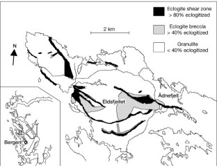 Jamtveit, B., Bucher-Nurminen, K. & Austrheim, H. Fluid controlled eclogitization of granulites in deep crustal shear zones, Bergen Arcs, western Norway. Contrib. Mineral. Petrol. 104, 184–193 ( 1990).
