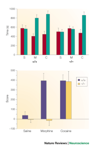 Selective knockout of the NK1 receptor blunts the rewarding effect of morphine while leaving its analgesic effect largely intact. So NK1-receptor antagonists could counteract problems of morphine dependency in the clinic.