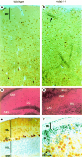 During mammalian brain development, immature neurons migrate radially from the neuroectoderm to defined locations, giving rise to characteristic cell layers1,2. Here we show that targeted disruption of the mouse disabled1 ( mdab1 ) gene3 disturbs neuronal layering in the cerebral cortex, hippocampus and cerebellum. The gene encodes a cytoplasmic protein, mDab1 p80, which is expressed and tyrosine-phosphorylated in the developing nervous system3. It is likely to be an adaptor protein, docking to others through its phosphotyrosine residues and protein-interacting domain4. The mdab1 mutant phenotype is very similar to that of the reeler mouse5,6,7. The product of the reeler gene, Reelin, is a secreted protein that has been proposed to act as an extracellular signpost for migrating neurons8,9,10. Because mDab1 is expressed in wild-type cortical neurons, and Reelin expression is normal in mdab1 mutants, mDab1 may be part of a Reelin-regulated or parallel pathway that controls the final positioning of neurons.