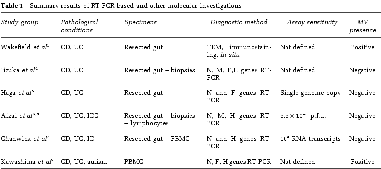 Table 1 Summary results of RT-PCR based and other molecular investigations