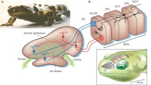 Our sense of smell is based on a remarkable chemical-detection system that possesses high sensitivity, broad discriminability and plastic, yet stable, function. Understanding how olfactory stimuli translate into perception is a problem of daunting complexity. How do odour-coding events in single cells correlate with emergent properties from the ensemble, and with behaviour? For comprehensive descriptions of neural function, analysis must extend from examination of how elemental principles relate to the function of the whole. The tiger salamander has long been used as an experimental model in studies of olfaction, enabling general questions about olfactory function to be approached.