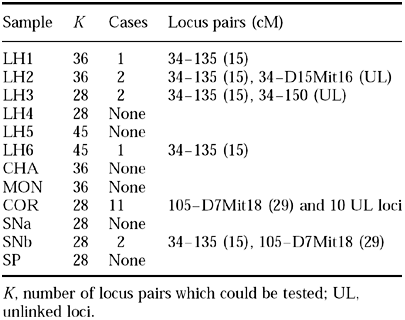 Table 4 Cases of two-locus disequilibrium within samples of house mice