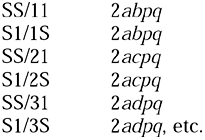 then, at equilibrium, the frequency of the combination SS should be ap, that of S1 aq, 1S bp, 11 bq, etc. The various double heterokaryotypes should have the following frequencies: