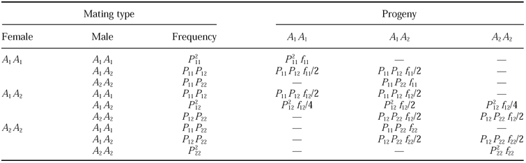 Table 1 The mating types and the frequency of progeny produced when there is selection in females for reproduction and viability selection for progeny of both sexes (see text)