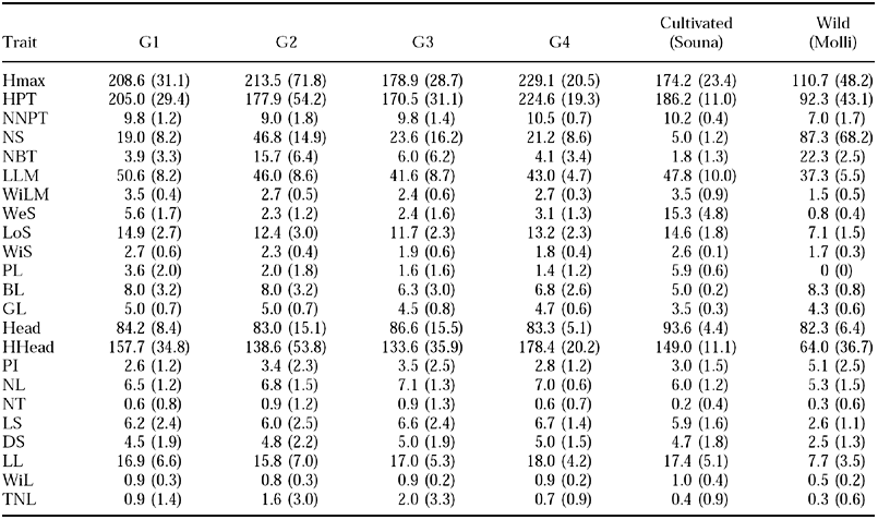 Table 4 Means (standard deviation) of characters within the groups