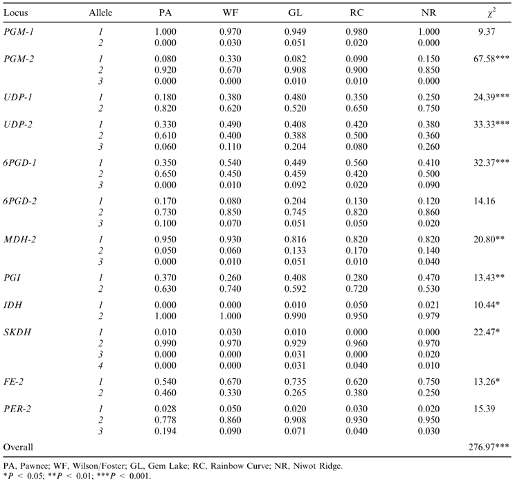 Table 4 Comparison of allelic frequencies among five limber pine populations
