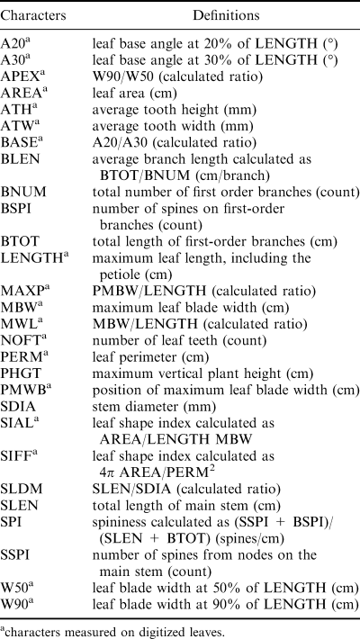 Table 2 Definition of characters used to estimate morphology in Chaenomeles