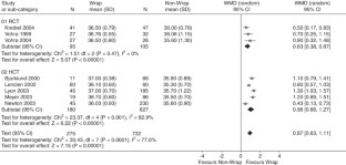 Three randomized controlled trials (RCT) and five historical controlled trials (HCT) were included. Meta-analysis shows wrapped infants had significantly higher admission temperatures than unwrapped infants (RCTs WMD 0.63°C, 95% confidence interval (CI) 0.38, 0.87; HCTs WMD 0.96°C, 95% CI 0.66, 1.27). A statistically significant difference in mortality was not found between wrapped and unwrapped infants in the RCTs (RR 0.72, 95% CI 0.36, 1.45) or the HCTs (RR 0.76, 95% CI 0.51, 1.13).