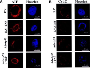 In the present study, we have investigated the mechanisms by which the restoration of wild-type (wt) p53 functions in p53 mutant cells increases their susceptibility to the cytotoxic action of tumor necrosis factor (TNF). Our data indicate that the resistance of p53-mutated cl.1001 cells to TNF-induced cell death was not due to a defect in the expression of TRADD and FADD, yet correlated with a reduced caspase-8 activation as well as a deficient mitochondrial membrane permeabilization. Moreover, cl.1001 cells failed to translocate the mitochondrial AIF and cytochrome c to the nucleus and to the cytosol, respectively, in response to TNF. Sensitization of these cells, following infection with a recombinant adenovirus encoding wtp53, to TNF-induced cytotoxicity resulted in the restoration of caspase-8 cleavage and the reestablishment of mitochondrial signs of apoptosis. These findings suggest that the cross-talk between p53 and TNF-induced cell death depends on mitochondria and that the combination of TNF and Adwtp53 may be a potential strategy to sensitize mutant p53 TNF-resistant tumors to the cytotoxic action of this cytokine.