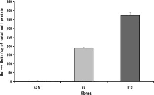 We have previously shown that the toxic pro-oxidant methylselenol is released from selenomethionine (SeMET) by cancer cells transformed with the adenoviral methionine α,γ-lyase (methioninase, MET) gene cloned from Pseudomonas putida. Methylselenol damaged the mitochondria via oxidative stress, and caused cytochrome c release into the cytosol thereby activating caspase enzymes and thereby apoptosis. However, gene therapy strategies are less effective if tumor cells overexpress the antiapoptotic mitochondrial protein bcl-2. In this study, we investigated whether rAdMET/SeMET was effective against bcl-2-overproducing A549 lung cancer cells. We established two clones of the human lung cancer A549 cell line that show moderate and high expression levels of bcl-2, respectively, compared to the parent cell line, which has very low bcl-2 expression. Staurosporine-induced apoptosis was inhibited in the bcl-2-overproducing clones as well as in the parental cell line. In contrast to staurosporine, apoptosis was induced in the bcl-2-overproducing clones as well as the parental cell line by AdMET/SeMET. Apoptosis in the rAdMET–SeMET-treated cells was determined by fragmentation of nuclei, and release of cytochrome c from mitochondria to the cytosol. A strong bystander effect of AdMET/SeMET was observed on A549 cells as well as the bcl-2-overproducing clones. rAdMET/SeMET prodrug gene therapy is therefore a promising novel strategy effective against bcl-2 overexpression, which has blocked other gene therapy strategies.