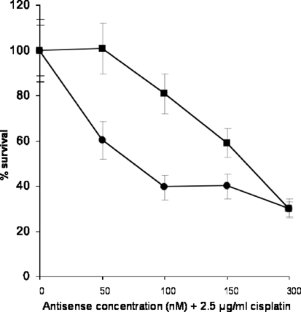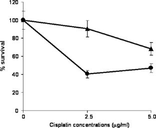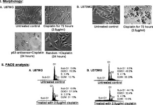 Most gene therapy strategies related to p53 concentrate on the restoration of the activity of mutant p53, as several observations indicate that tumors and cell lines having the mutant gene are resistant to chemotherapy. However, as there is also some evidence to the contrary, we studied the relationship of the p53 status to the cellular response of glioma cells that were exposed to cisplatin. At a concentration of 2.5 μg/ml (which is about half the peak pharmacological blood level reached during chemotherapy), U373MG glioma cells, which had a mutant p53 gene, were more sensitive to the drug as compared to U87MG glioma cells (with normal p53). The U373MG cells responded with apoptosis while U87MG cells responded with a G2–M arrest. In U87MG cells, blocking the p53 response by antisense oligonucleotides also sensitized the cells to 2.5 μg/ml cisplatin, and shifted the cellular response from arrest to caspase 3-mediated apoptosis. A sensitive, p53-independent, mechanism for chemotherapy-induced apoptosis suggests that, in some cases, p53 abrogation by gene therapy or small molecule-based strategies could be a viable therapeutic strategy.