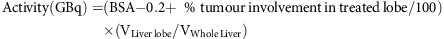 90Y-resin microspheres activity was calculated as follows: