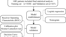 External validation was performed by using the nomogram for patients from the two independent validation cohorts. All statistical analyses were two-sided and were performed using the R cran Design package (R Development Core Team, 2010). The characteristics of the three cohorts were compared using the Chi-square or Fisher exact tests for qualitative data and the Kruskal–Wallis test for quantitative data.