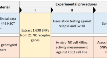 Hsu KC, Keever-Taylor CA, Wilton A, Pinto C, Heller G, Arkun K et al. Improved outcome in HLA-identical sibling hematopoietic stem-cell transplantation for acute myelogenous leukemia predicted by KIR and HLA genotypes. Blood 2005; 105: 4878–4884.