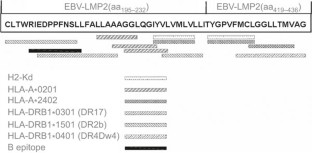 Lalonde A, Avila-Cariño J, Caruso M, de Campos-Lima PO . Rescue of the immunotherapeutic potential of a novel T cell epitope in the Epstein-Barr virus latent membrane protein 2 . Virology 2007 ; 361 : 253 – 262.