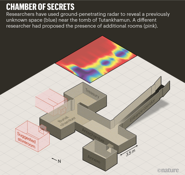 Archaeologists claim to have discovered hidden chambers behind the walls of Tutankhamun’s tomb in a radar survey. The find resurrects a controversial theory that the young king’s burial place connects to a larger tomb containing his mother-in-law Nefertiti, whose resting place has never been found. Although not all researchers are convinced the hidden rooms exist, Egyptologist Nicholas Reeves says if the ancient queen is found to have been buried like a pharaoh, “it could be the biggest archaeological discovery ever.”