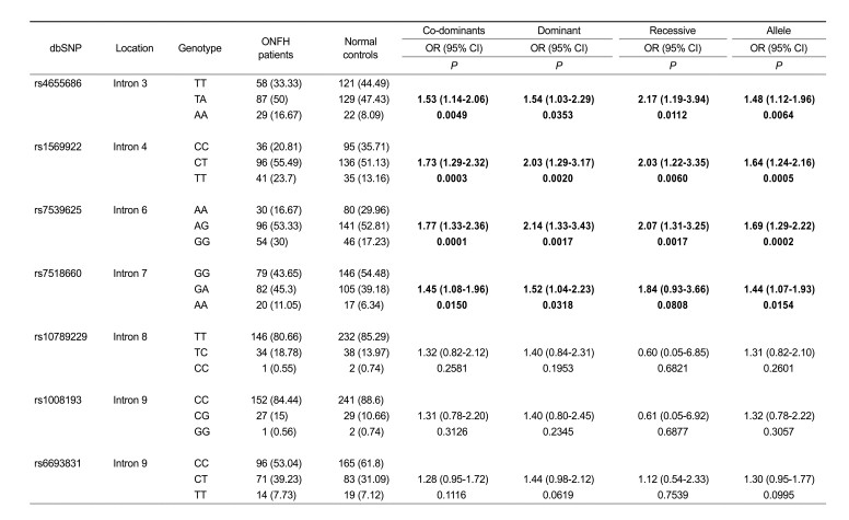 Table 3 Association of IL23R gene polymorphisms between idiopathic ONFH patients and controls