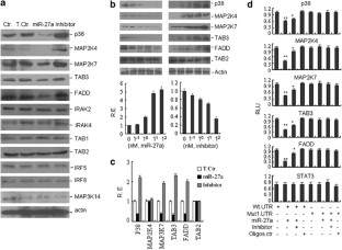 Liu T, Tang H, Lang Y, Liu M, Li X . MicroRNA-27a functions as an oncogene in gastric adenocarcinoma by targeting prohibitin. Cancer Lett 2009; 273: 233–242.