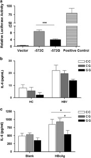 Lu Y, Peng J, Wang C, Zhu Y, Wang F, Sun Z . IL-6 promoter functional polymorphism -572C/G affects spontaneous clearance of hepatitis B virus infection. Clin Lab 2014; 60: 1903–1907.