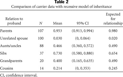 Table 2 Comparison of carrier data with recessive model of inheritance