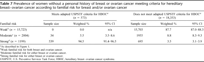 Table 7 Prevalence of women without a personal history of breast or ovarian cancer meeting criteria for hereditary breast–ovarian cancer according to familial risk for breast and/or ovarian cancer