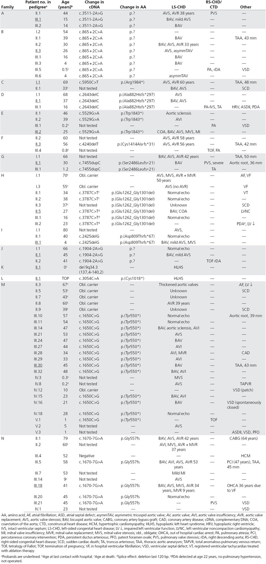 Table 3 Cardiac phenotypes of families with clearly pathogenic NOTCH1 mutations (truncating mutations, splice-site mutations, whole-gene deletions)
