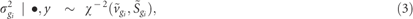 Sample the SNP effect variance from the scaled inverted χ2 process (3).