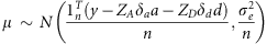 where mu;d is the expected mean for di, and m(t) refers to the number of non-zero dominance effects in t-th Markov chain Monte Carlo iteration. In the above, the fixed parameters νe=νa=νd=4, whereas