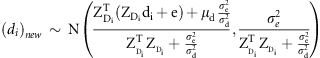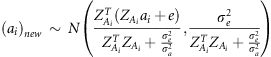 For i-th marker effects ai and di, we sampled new ai and di from a full-conditional posterior