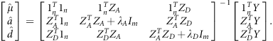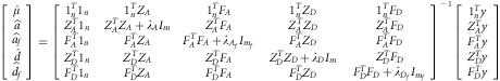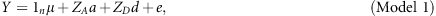 Y=1nmu;+ZAa+FAaf+ZDd+FDdf+e, where af, df denote the additive and dominance effects of the functional markers, and FA and FD are the design matrices for them. Thus, the mixed model equation for this model will be: