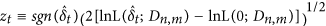 converges in distribution to F(w)=exp(−e−w), which, in accordance with the Fisher-Tippett extreme value theorem, is also the limiting distribution if the zt are independent.