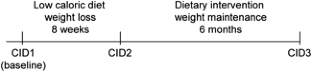 Subjects, who lost ⩾8% of body weight induced by low-caloric diet in an 8-week weight loss period, were assigned to weight loss maintenance with dietary intervention for 6 months.