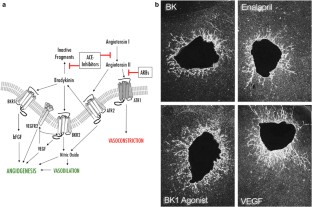 Sanchez de Miguel L, Neysari S, Jakob S, Petrimpol M, Butz N, Banfi A et al. B2-kinin receptor plays a key role in B1-, angiotensin converting enzyme inhibitor-, and vascular endothelial growth factor-stimulated in vitro angiogenesis in the hypoxic mouse heart. Cardiovasc Res 2008; 80 (1): 106–113.