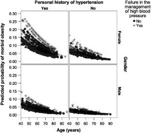 We did not find any paper that assessed clinical inertia in obese patients. Therefore, no paper has compared the clinical inertia rates between morbidly and nonmorbidly obese patients. A cross-sectional observational study was carried out. We analysed 8687 obese patients ⩾40 years of age who attended their health-care center for a checkup as part of a preventive program. The outcome was morbid obesity. Secondary variables were as follows: failure in the management of high blood pressure (HBP), high blood cholesterol (HBC) and high fasting blood glucose (HFBG); gender; personal history of hypertension, dyslipidemia, diabetes, smoking and cardiovascular disease; and age (years). We analysed the association between failures and morbid obesity by calculating the adjusted odds ratio (OR). Of 8687 obese patients, 421 had morbid obesity (4.8%, 95% confidence interval (CI): 4.4–5.3%). The prevalence rates for failures were as follows: HBP, 34.7%; HBC, 35.2%; and HFBG, 12.4%. Associated factors with morbid obesity related with failures were as follows: failure in the management of HBP (OR=1.42, 95% CI: 1.15–1.74, P=0.001); failure in the management of HBC (OR=0.73, 95% CI: 0.58–0.91, P=0.004); and failure in the management of HFBG (OR=2.24, 95% CI: 1.66–3.03, P<0.001). Morbidly obese patients faced worse management for HBP and HFBG, and better management for HBC. It would be interesting to integrate alarm systems to avoid this problem.