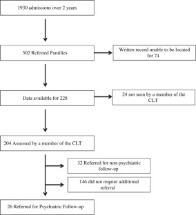 Most mothers (69%) were referred within a week of birth, and 100 (49%) of the referred mothers received a psychiatric diagnosis. Psychiatric follow-up was recommended for 13% on leaving the NICU and additional follow-up referrals were made for another 16%. Mothers with more than one initial reason for referral, a past psychiatric history, receiving therapeutic services, receiving a psychiatric diagnosis and receiving pharmacotherapy were all significantly more likely to have follow-up recommended on discharge.