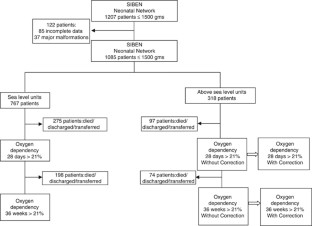We reviewed the charts of infants who were⩽1500 g at birth, admitted to six neonatal intensive care units (NICUs) near sea level and in seven NICUs at varying altitudes above sea level from the SIBEN network between 2008 and 2010. We defined bronchopulmonary dysplasia (BPD) as oxygen dependency at 28 days of life and at 36 weeks postmenstrual age.