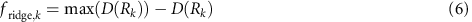 The ridge function, fridge, is derived from the Euclidean distance transform,32 D, which is the minimum distance of any point in the red-blue color space to a point on the ridge of the kth tissue component, Rk. To scale the likelihood with distance, the ridge function (Supplementary Figure S3b(iii)), is expressed by