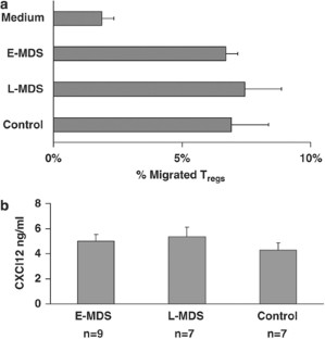 CD4+CD25+FOXP3+ T regulatory cells (Tregs) prevent autoimmunity by restricting overexuberant immune responses, but the same subpopulation can incur detrimental effects on antitumor responses. In both cases, the suppressor potential of Tregs appears to be strongly influenced by their compartmentalization. In myelodysplastic syndromes (MDS), immune deregulation and autoimmunity in the early stages might lead to ineffective hematopoiesis and bone marrow (BM) failure, whereas late-stage disease is characterized by the immune escape of the malignant clone. We show that these two stages of MDS are associated with differential Treg activity. Specifically, we found that in early stage MDS, compared with normal hematopoiesis and late stage MDS, Tregs are dysfunctional and their BM homing through the CXCL12/CXCR4 axis is seriously impaired as a result of CXCR4 downregulation. Conversely, in late stage MDS, Tregs are systemically and locally expanded and retain their function and migratory capacity. Moreover, Treg levels follow the disease course and are significantly reduced in treatment responding patients. Our findings indicate Treg involvement in the pathophysiology of MDS; defective suppressor function and BM trafficking of Tregs may be important in the autoimmune process of early MDS, but increased Treg activity could favor leukemic clone progression in late stage disease.