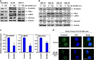 Wang Y, Krivtsov AV, Sinha AU, North TE, Goessling W, Feng Z et al. The Wnt/beta-catenin pathway is required for the development of leukemia stem cells in AML. Science 2010; 327: 1650–1653.