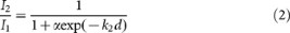 where k1 is a fitting parameter that describes the decay rate of the evanescent wave. This expression has a clear physical meaning, because I1 should be proportional to the coupling strength between the driven SW and the eigen SPP and thus must follow an exponential function.