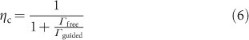 where Γfree is the decay rate into free space modes. ηc differs from the first metric because it requires an estimation of the total number of radiated photons as opposed to the total decay rate, which includes both non-radiative and radiative terms. That is, we can write