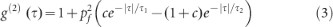 where pf is the single photon emission probability, τ1 is a time constant for the central anti-bunching dip, τ2 is the time constant for correlation function decay at intermediate times, and c is a parameter describing the amplitude of the bunching shoulders. We then estimated the background by plotting the parameter