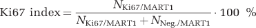 where NKi67/MART1 is the number of Ki67-positive melanocytic cells and NNeg./MART1 the number of Ki67-negative melanocytic cells (Figures 1g and h).